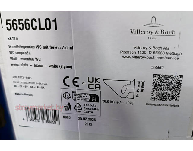 Унитаз подвесной VILLEROY&BOCH Skyla 5656CL01 без ободка с системой TwistFlush и сиденьем в комплекте